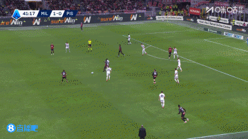 第7分钟,莱奥禁区前沿右路带球内切,晃开角度后起脚兜射破门,米兰1-0领先!↓